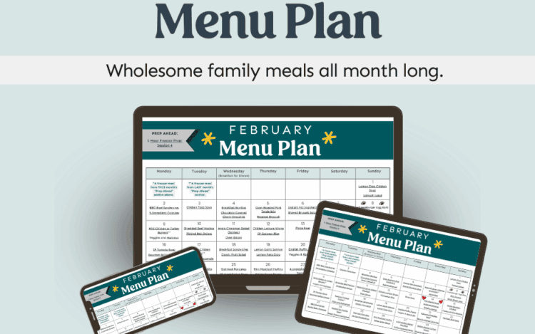 Menu plans are based around the top real food (no junk!) sale items we find at Hy-Vee that week. If you don’t have a Hy-Vee, no sweat. Our plan will still work great!